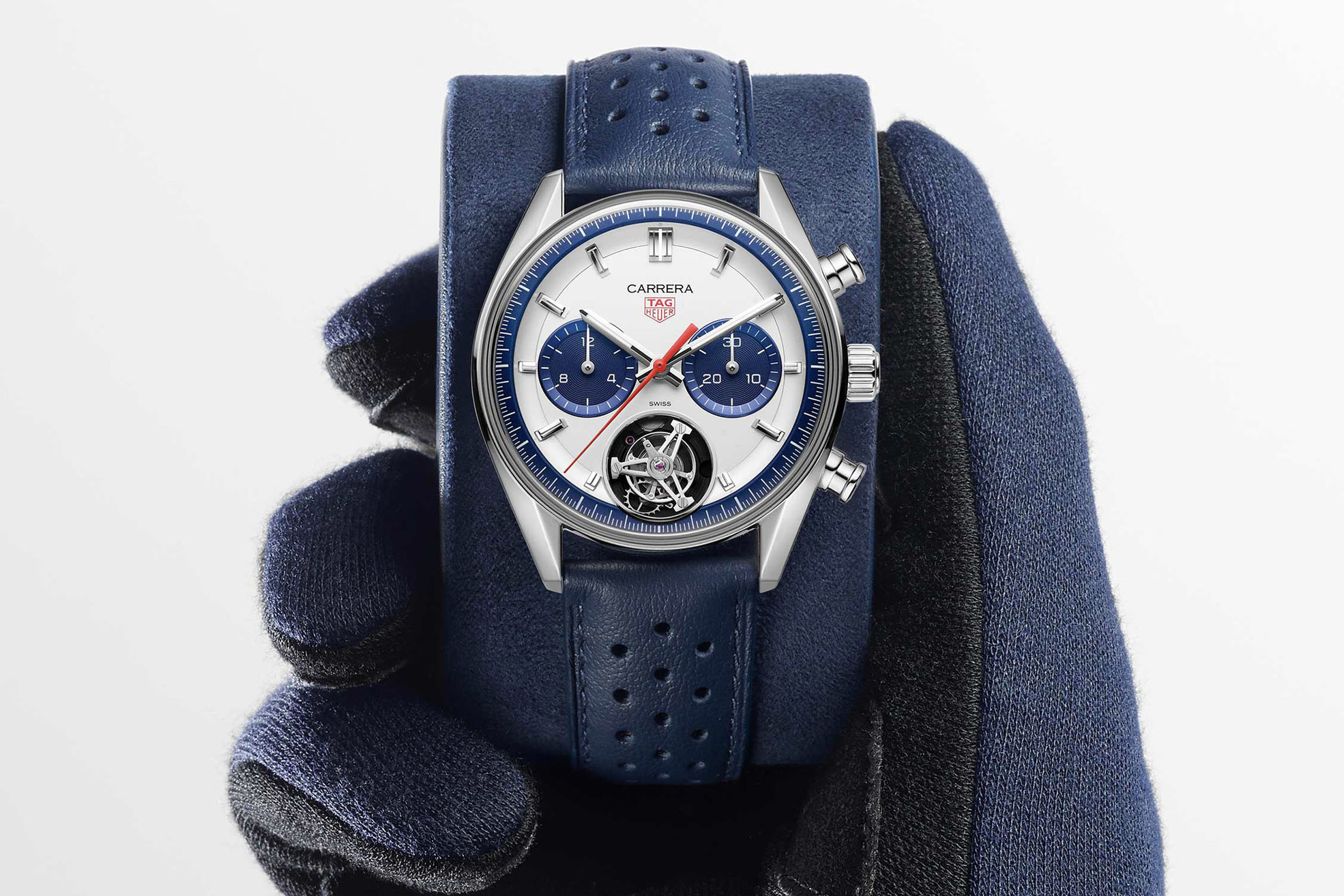 TAG Heuer представил новую модель Carrera Chronograph Tourbillon с уникальным корпусом синего цвета, олицетворяющим яркую атмосферу Альп.