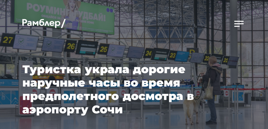 Женщина из Красноярска стала жертвой кражи своих наручных часов в аэропорту Сочи