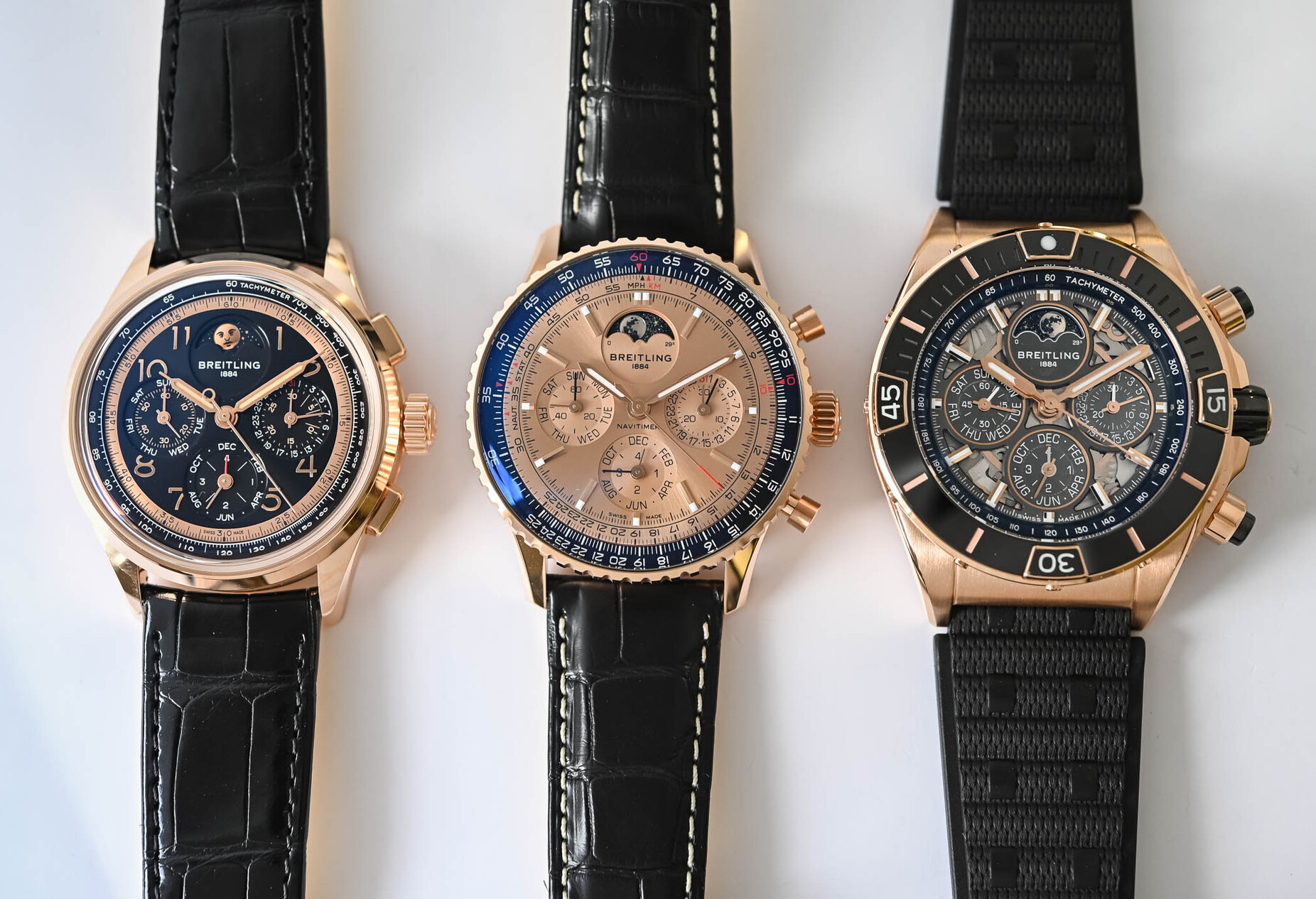 Коллекция 140-летнего юбилея включает три модели: Premier B19 Datora, Navitimer B19 Chronograph 43 Perpetual Calendar и Super Chronomat B19 44 Perpetual Calendar. Все часы представлены в корпусе из красного золота с циферблатами, играющими на контрасте золота и черного.
